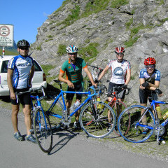 Über Schwyz geht es ins Muotathal wo der Pragelpass mit auf den ersten 2 Kilometern durchschnittlichen 18 % auf uns wartet. Auch danach ist es noch nicht getan, Steigungen um die 14% werden mit 18%tigen Spitzen garniert. Diese Tour hatte ich 2007 schon einmal angeboten und den Verkehr am Urner See und die Rampen völlig verdrängt. Wer das ältere Bild genau anschaut erkennt 3 Kettenblätter, über die wir jetzt stellenweise froh gewesen wären. Die Strapazen sind auf 1543 m zu Ende und wir fahren am Klöntaler See vorbei zurück nach Glarus.